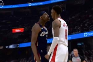 火气十足!斯图尔特和杰伦·布朗卡位互相推搡 双方皆吃T!