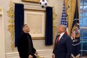 美国总统特朗普在社媒放出一段与C罗踢球的AI生成视频,并配文:“C罗是个很棒的人。很高兴在白宫与他见面。他既聪明又酷!!!——唐纳德·特朗普总统”