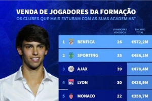 体育资讯11月21日讯 德国转会市场统计了本世纪各俱乐部出售青训球员的收入,并列出榜单,本菲卡、葡萄牙体育、阿贾克斯前三。