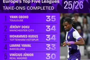 体育资讯11月21日讯 五大联赛战火即将重燃,数据机构squakwa也统计了本赛季至今的五大联赛球员成功过人次数情况,图卢兹新星扬·博霍居首。