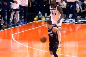 火气十足!斯图尔特和杰伦·布朗卡位互相推搡 双方皆吃T!