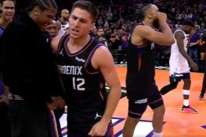 火气十足!斯图尔特和杰伦·布朗卡位互相推搡 双方皆吃T!