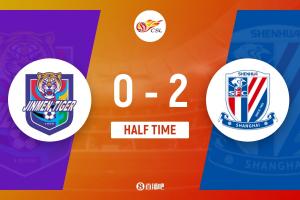 上半场补时5分钟,津门虎0-2申花。
