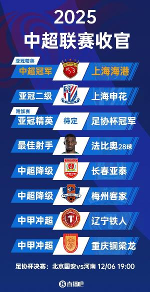 体育资讯11月22日讯 2025赛季中超赛季收官,上海申花3-1客胜天津津门虎,2分之差获得亚军。