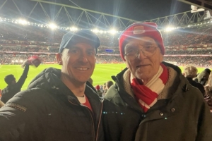 枪手跟队记者Charles Watts在赛后并未就比赛进行点评,但晒出自己和一位老枪迷(很可能是他的父亲)的合照,并配文:“我们每年都在变老,但这种感觉却丝毫未变。事实上,它可能会变得更加特别。阿森纳!北伦敦一如既往是红色的!”
