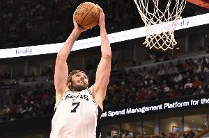 本场比赛,马刺中锋科内特上半场发挥不错,攻防在线,但下半场进攻端参与度不高,甚至一次出手都没有。