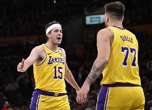 湖人首发:东契奇、文森特、里夫斯、八村塁、艾顿。