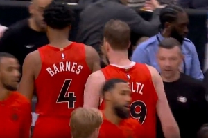 火气十足!斯图尔特和杰伦·布朗卡位互相推搡 双方皆吃T!
