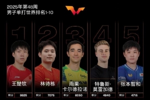 国际乒联第51周排名:王楚钦、林诗栋男单前二,中国包揽女单前五
