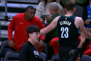 火气十足!斯图尔特和杰伦·布朗卡位互相推搡 双方皆吃T!
