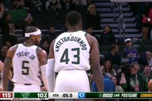 火气十足!斯图尔特和杰伦·布朗卡位互相推搡 双方皆吃T!