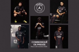 体育资讯11月25日讯 官方消息,巴黎与乔丹品牌于今日公布了俱乐部2025-26赛季的第四款球衣。其设计灵感源自巴黎时装工坊的传统,诠释了优雅、创意与性能的融合。