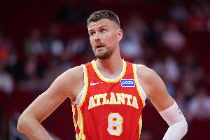 老鹰内线波尔津吉斯上半场手感不太理想,外线三分出手全部打铁。