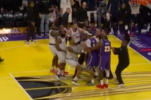 火气十足!斯图尔特和杰伦·布朗卡位互相推搡 双方皆吃T!