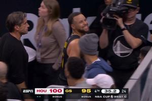 GIF-库里有点沮丧 一瘸一拐提前离场