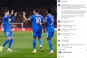 巴尔韦德也在社媒晒出与姆巴佩、维尼修斯庆祝合影,配文写道:“经过一周的风波,我们比以往任何时候都更加团结。拥有维尼修斯和姆巴佩是我们的幸运,但能够拥有一支全力以赴的世界最佳球队更是我们的荣幸。就我个人而言,我正在努力恢复到最佳状态。主教练一直在我身边支持我,尽一切可能帮助我继续成长并为球队做出贡献。虽然并不总是一帆风顺,但我们教练组和球员们比以往任何时候都更加团结。”