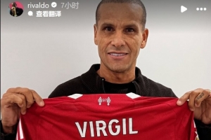 里瓦尔多社媒晒出手拿范戴克球衣的照片,配文:“能收到世界最佳后卫赠送的球衣,真是太棒了!”