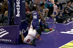 火气十足!斯图尔特和杰伦·布朗卡位互相推搡 双方皆吃T!