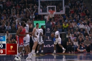 火气十足!斯图尔特和杰伦·布朗卡位互相推搡 双方皆吃T!