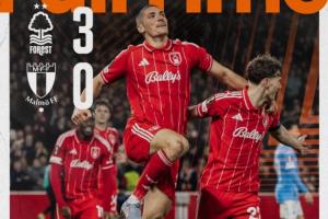 体育资讯11月29日讯 欧联杯赛场,诺丁汉森林3-0大胜马尔默。森林近3场欧联1球不失拿下7分,击败波尔图和马尔默,战平格拉茨风暴。
