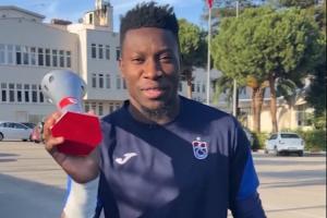 体育资讯11月29日讯 今日,曼联外租门将奥纳纳领取了土耳其媒体HT Spor评选的10月最佳球员奖杯。