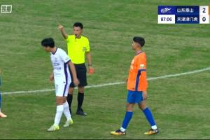 中超第29轮,山东泰山vs天津津门虎,比赛第87分钟,陈哲宣不满判罚连续向主裁李海新输出,主裁先是黄牌警告,随后直接掏出红牌罚下陈哲宣。