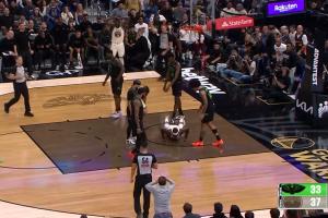 火气十足!斯图尔特和杰伦·布朗卡位互相推搡 双方皆吃T!