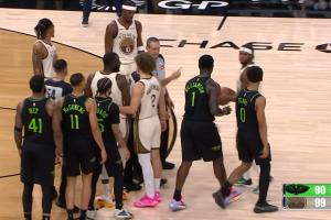 火气十足!斯图尔特和杰伦·布朗卡位互相推搡 双方皆吃T!