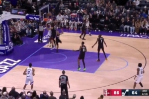 火气十足!斯图尔特和杰伦·布朗卡位互相推搡 双方皆吃T!