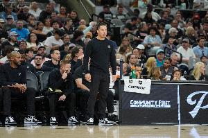 其次这个阵容看不出“实验点”,因为如果马刺需要全空间,等文班回来可以摆出更合理的阵容,奥利尼克也可以算一个伪空间点(而且试的这个阵容同样没有护框,防守端并不优于奥利打5)试其他全空间的意义比较模糊。如果是为了全空间的同时保持五小机动性和无限换防,那有巴恩斯存在的情况下,机动性和换防能力同样存疑