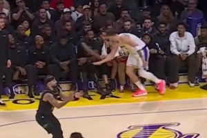 火气十足!斯图尔特和杰伦·布朗卡位互相推搡 双方皆吃T!