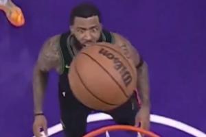 火气十足!斯图尔特和杰伦·布朗卡位互相推搡 双方皆吃T!