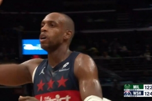 火气十足!斯图尔特和杰伦·布朗卡位互相推搡 双方皆吃T!