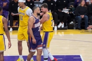 火气十足!斯图尔特和杰伦·布朗卡位互相推搡 双方皆吃T!