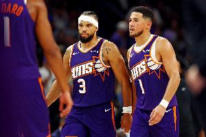三节战罢,狄龙狂轰33分,太阳大比分领先湖人。布克本场遭遇右腹股沟伤势,中途伤退。