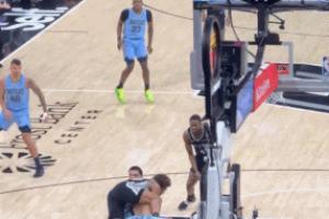 火气十足!斯图尔特和杰伦·布朗卡位互相推搡 双方皆吃T!