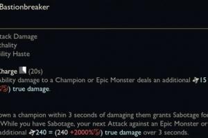 你过去三秒内伤害过的敌方英雄死亡会为你提供一个破坏效果,你对史诗级野怪或者防御塔的下一次攻击会消耗掉这个效果,造成基于穿甲的额外持续伤害
