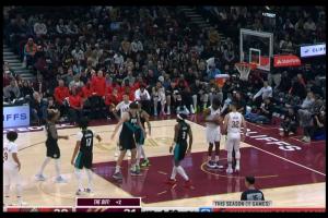 火气十足!斯图尔特和杰伦·布朗卡位互相推搡 双方皆吃T!