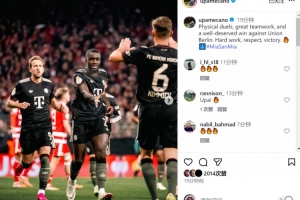 体育资讯12月4日讯 德国杯1/8决赛,于帕梅卡诺踢满全场,拜仁客场3-2击败柏林联合,晋级下一轮。