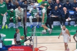 火气十足!斯图尔特和杰伦·布朗卡位互相推搡 双方皆吃T!