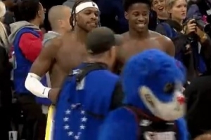 火气十足!斯图尔特和杰伦·布朗卡位互相推搡 双方皆吃T!