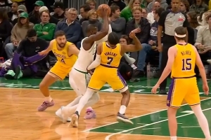 火气十足!斯图尔特和杰伦·布朗卡位互相推搡 双方皆吃T!