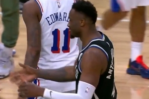 火气十足!斯图尔特和杰伦·布朗卡位互相推搡 双方皆吃T!