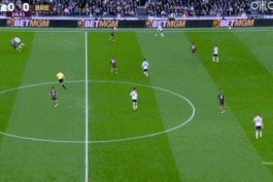 比赛第25分钟,哈维·西蒙斯右侧插上横扫门前,里沙利松包抄破门!