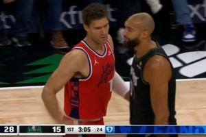 火气十足!斯图尔特和杰伦·布朗卡位互相推搡 双方皆吃T!