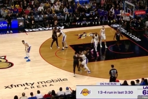 火气十足!斯图尔特和杰伦·布朗卡位互相推搡 双方皆吃T!