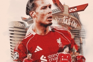 利物浦官方社媒发布了为此役制作的海报,范戴克、埃基蒂克、凯尔凯兹、维尔茨出镜。