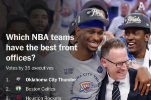 体育资讯12月10日讯 The Athletic邀请了联盟中的36位高管对联盟中各支球队的管理层进行了排名,雷霆管理层连续两年排名第一。