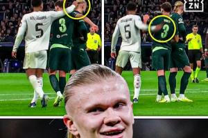 DAZN晒出图,在哈兰德罚点前,贝林想碰下哈兰德头发,不过被鲁本·迪亚斯阻挡,之后贝林还回头看了一眼。有球迷也晒出了这一瞬间的视频。