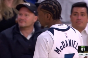 火气十足!斯图尔特和杰伦·布朗卡位互相推搡 双方皆吃T!